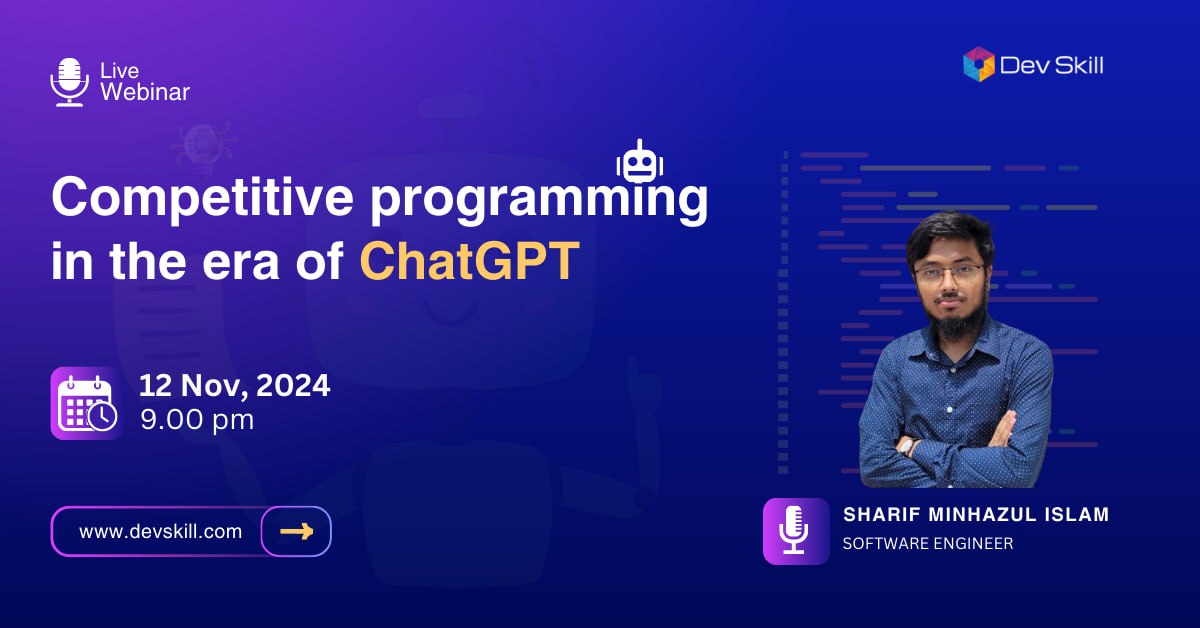 Join us for “Competitive Programming in the Era of ChatGPT,” an in-depth webinar exploring how AI is revolutionizing the approach to coding challenges and problem-solving. We’ll dive into practical strategies for using ChatGPT as a coding companion to enhance your programming skills, speed up problem-solving, and boost your competitive edge. Gain insights into leveraging AI to brainstorm algorithms, debug complex code, and improve efficiency, all while discussing the ethical boundaries and best practices for fair use in competitions. Whether you’re a beginner or an experienced coder, this session will equip you with the knowledge to thrive in the evolving, AI-driven world of competitive programming.